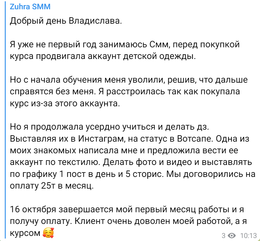 — за время курса заработала более 65 тыс.руб., из которых 50 сделала стабильным заработком, устроившись в компанию;