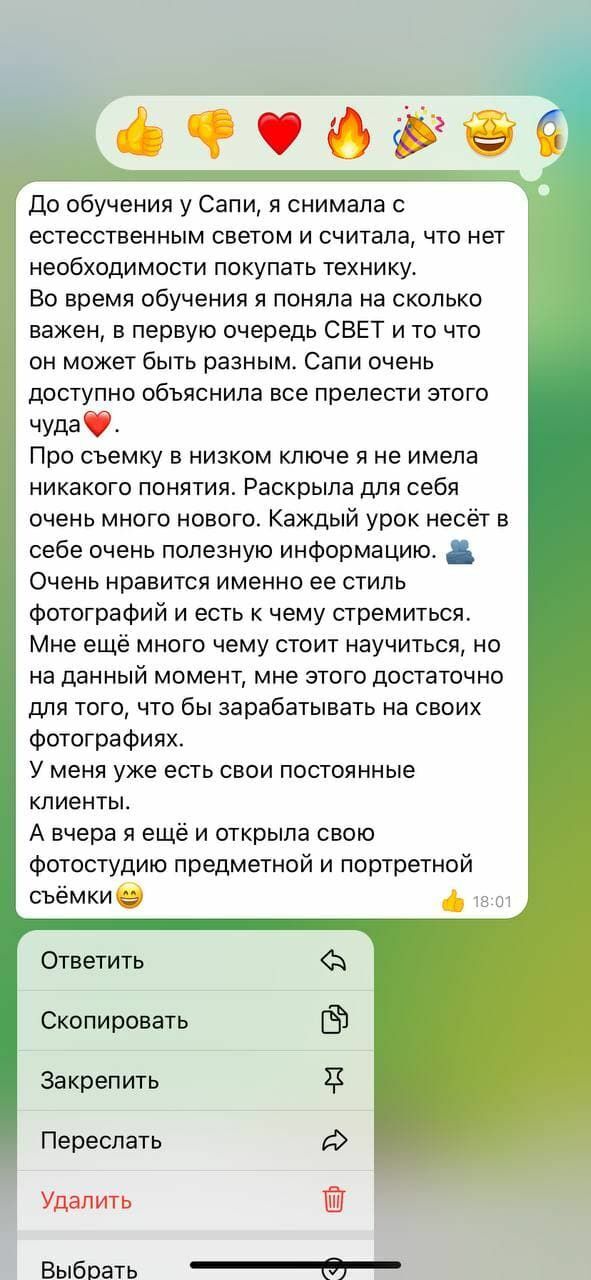 Главной ценностью курса считает тему работы со светом, которую Сапи доступно и подробно раскрывает на обучении.